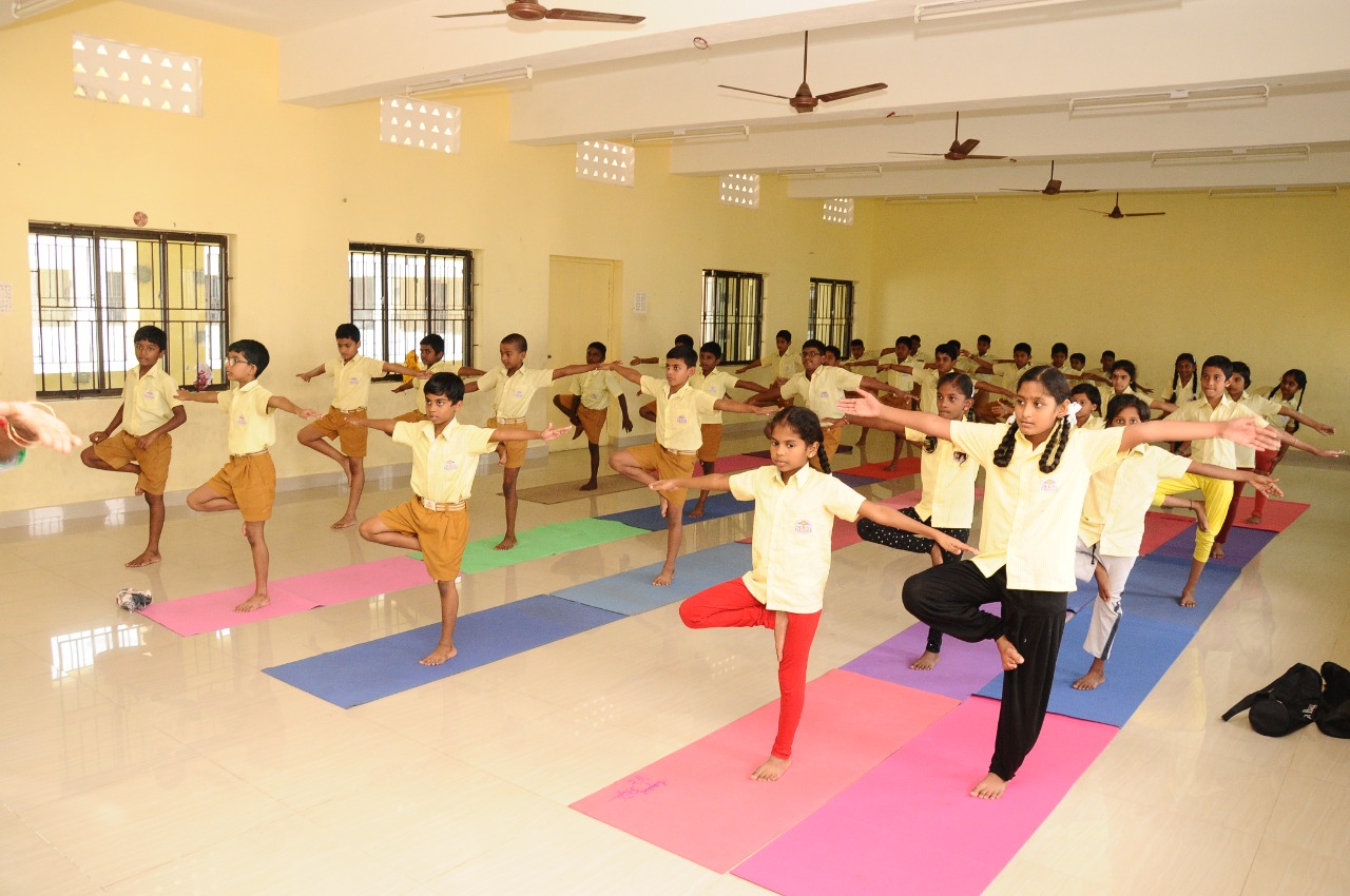 A separate Yoga hall is provided to practise this Indian spiritual and ascetic discipline. Yoga is believed to help in controlling mind, body and soul. We teach breath control, simple meditation, and the adoption of specific bodily postures, which is widely practised for health and relaxation. Our Yoga teachers are well trained and have been practising this form for many years. Our children would benefit from their knowledge and experience.